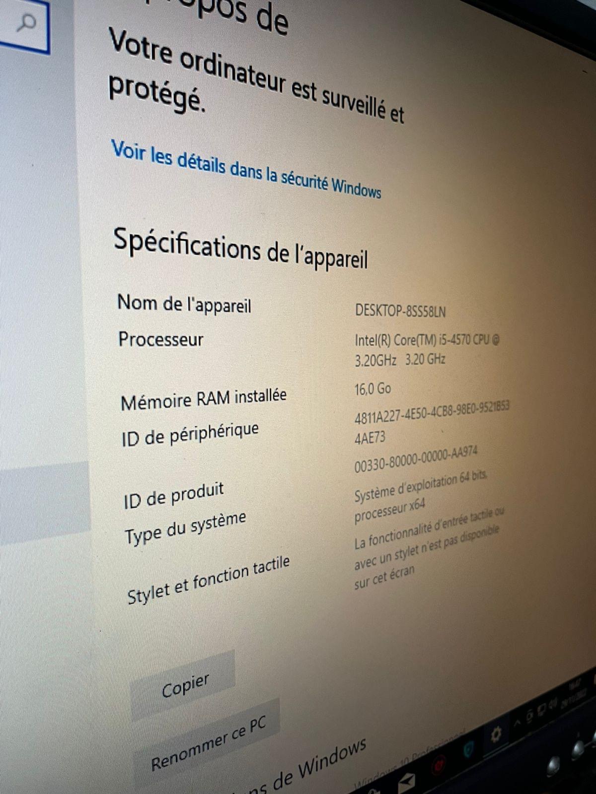 ✅processeur :Intel (R) Core (TM) i5 4eme Génération @ 3.20GHz